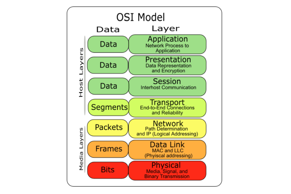 | Data Link Layer | Frames | MAC address |